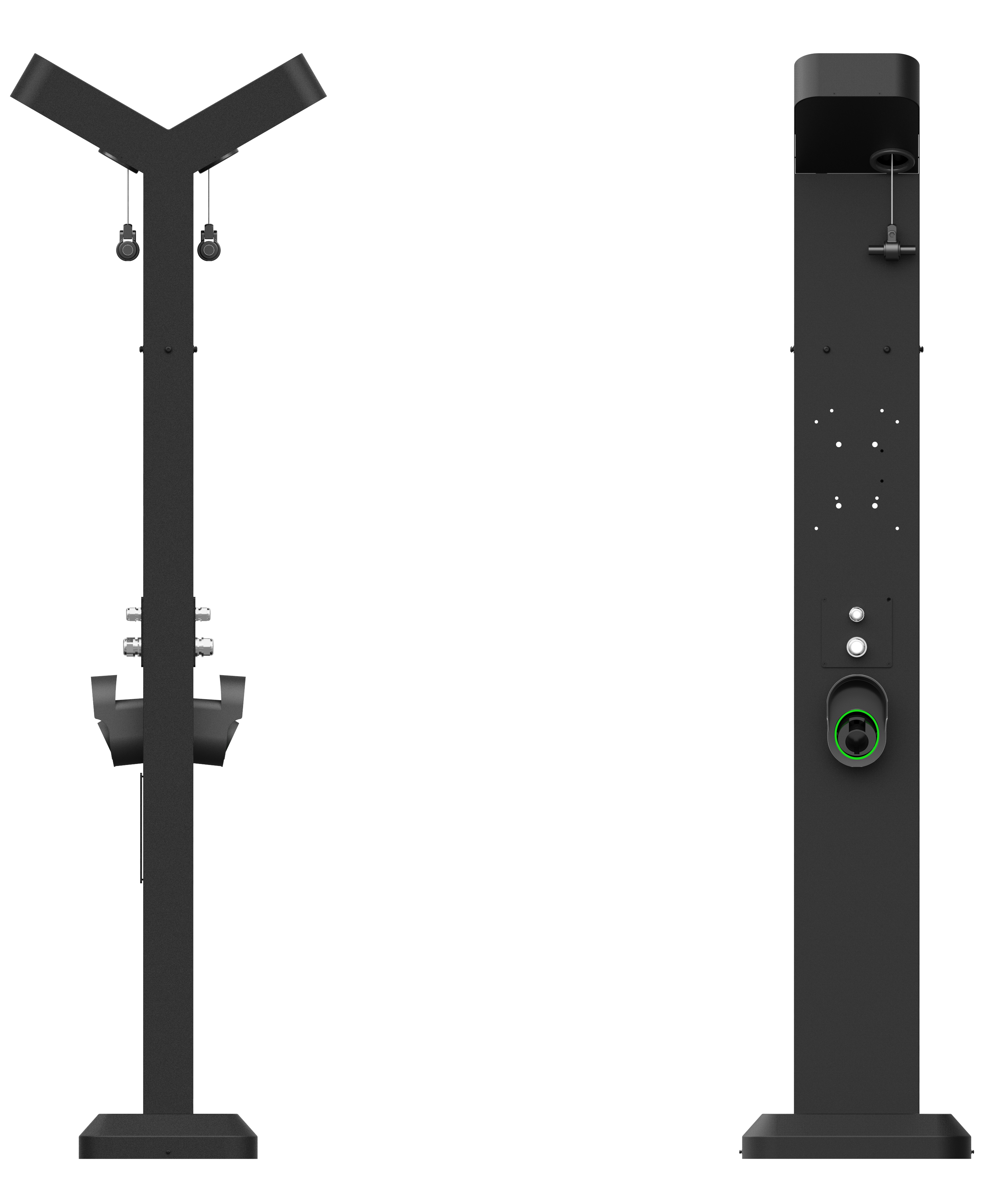 Create a convenient and safe charging area with EVBOLT MP pedestal mounting. Our EV charger pedestals can be installed wherever works best for you. Perfect for garages, parking lots, along curbside parking, and more. This pedestal can be a single or dual-mount option without the cable management system.