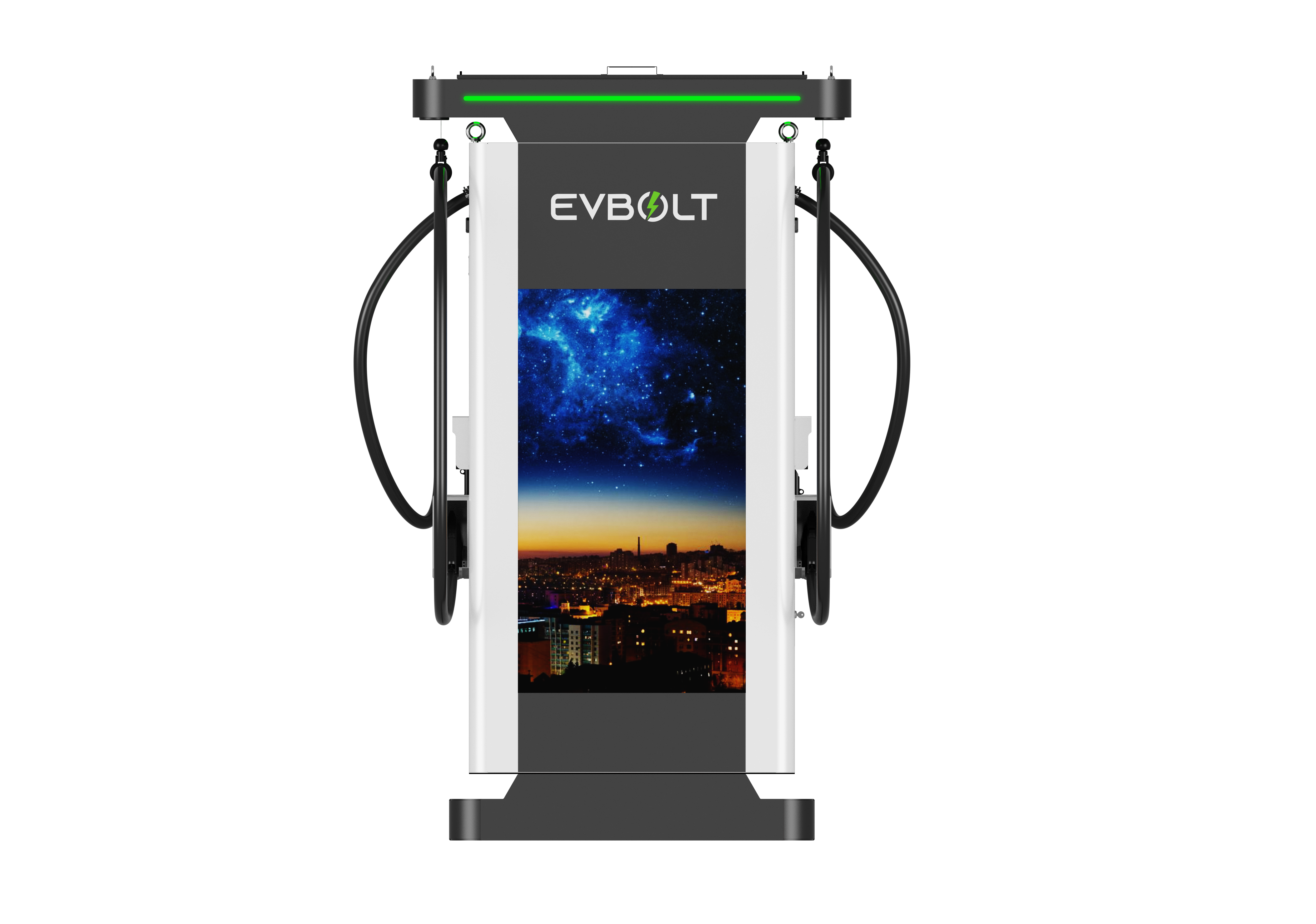 The EVBOLT Vision 360 sets a new industry benchmark as the most powerful and visually compelling dual-port DC Fast Charger on the market. Engineered for gas stations, highway corridors, and high-traffic commercial areas, this cutting-edge charger delivers up to 150kW of output power, allowing two electric vehicles to charge simultaneously with dedicated interfaces and dual 7" interactive touchscreens.