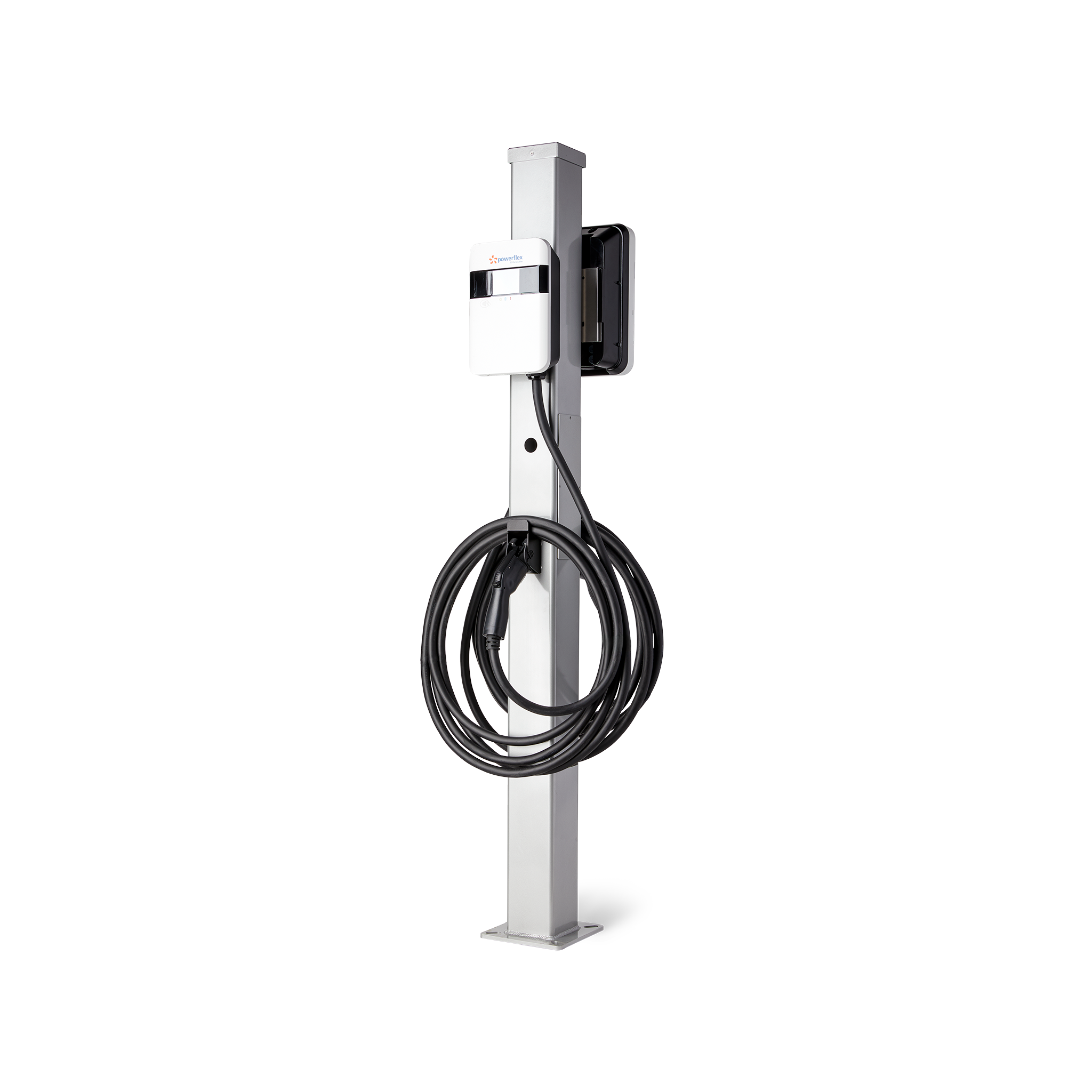 Deploy a complete EV charging solution with this all-in-one commercial-grade bundle. Ideal for public, fleet, and workplace charging, it includes four 48A Level 2 chargers, each mounted on sleek 6-ft pedestals with 25-ft J1772 cables for maximum reach and accessibility.